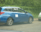 Car idling on road and double yellow lines blocking sight lines opposite Stansgate Avenue