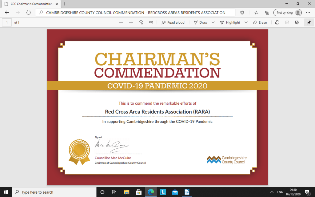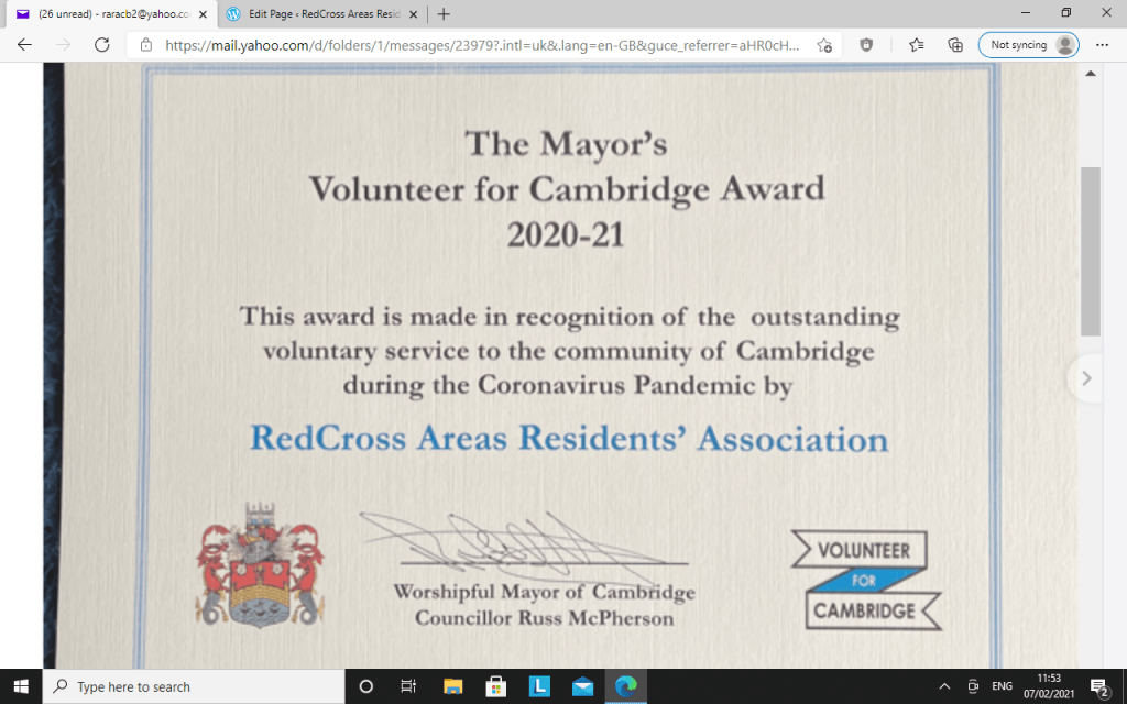 (RARA) Your Resident Association and locals are very community minded around RedCross Areas volunteering in many different ways some at Addenbrooke’s, some fundraising for Addenbrookes Charitable Trust, Citizen Advice Bureau, Council SOS Team, Nightingale Community Garden, Cambridge ReUse, Cambridge Cycling Campaign, Homeless Shelters, Cambridge Convoy Refugee Action Group, Rock Road Library Friendly Café, Cambridge Families Holiday Lunch Programme, Cambridge City Food Bank, Cambridge Family Mediation Service, Cambridge Older Peoples Enterprise, dog walking, visiting housebound neighbours and the very impressive list goes on …………..
