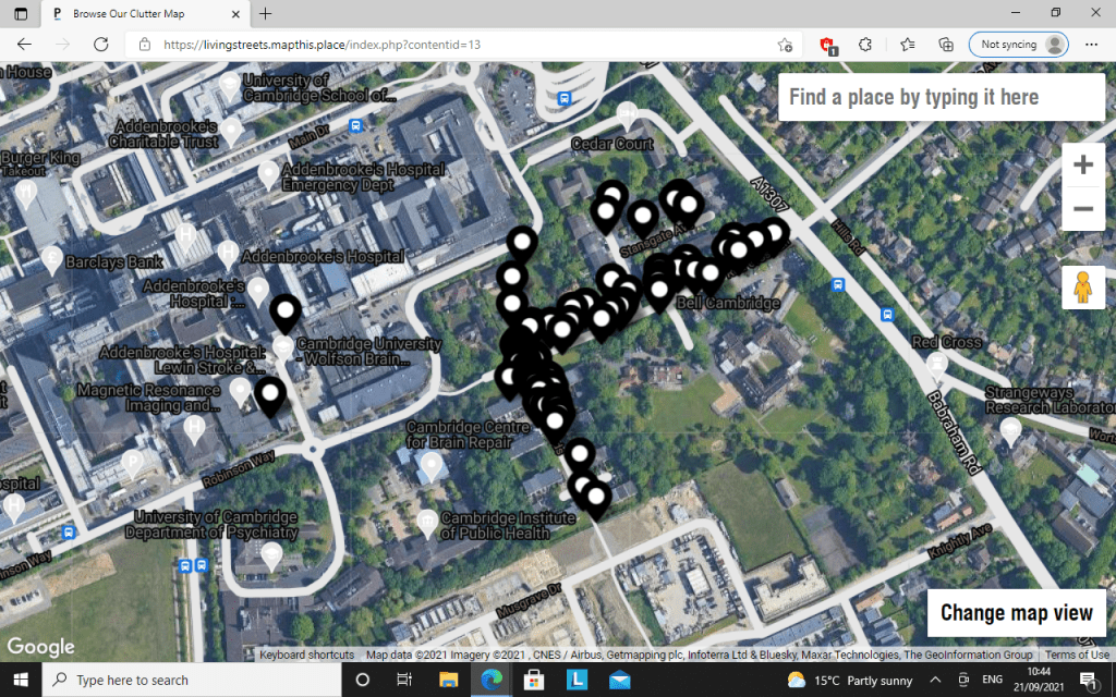 Cambridge Council Report a Highways Issue e.g. obstruction on paths, potholes, missing signs etc. https://highwaysreporting.cambridgeshire.gov.uk/