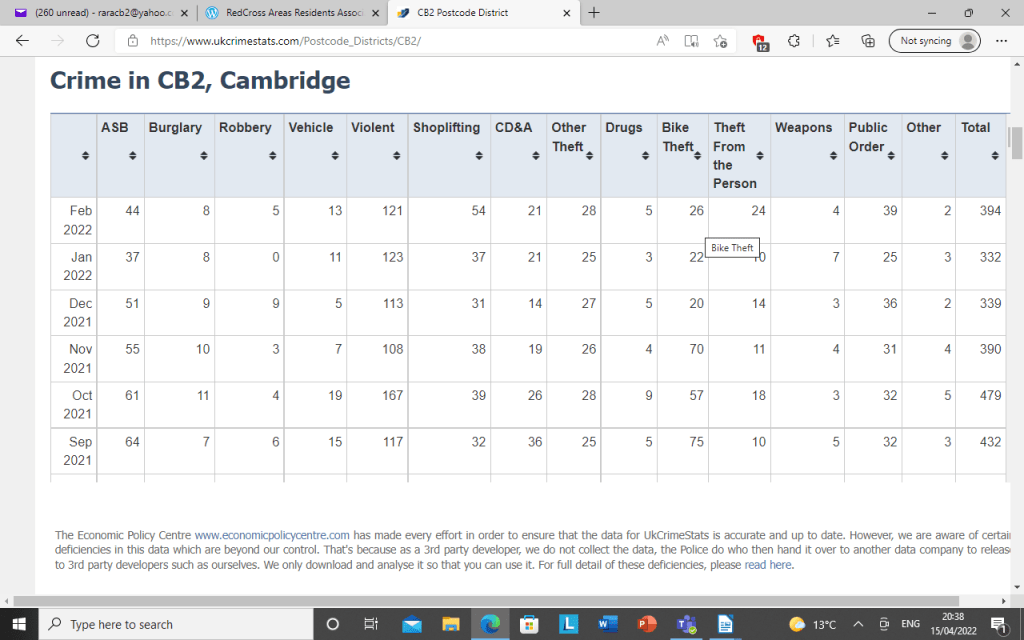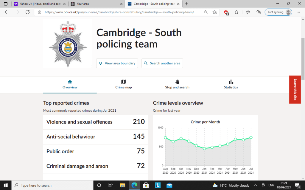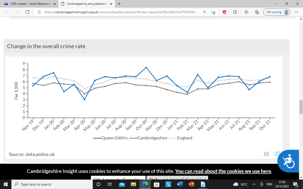 Queen Edith’s crime stats are down from a high in Oct 2020 417 to Jan 2021 181 Look up your own streets just enlarge the mapYour area (cambs.police.uk)
