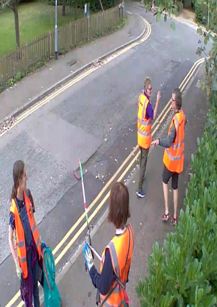 5/ Groups in uniforms, high viz jackets, black fleeces and lanyards smoking and dropping PPE disposable masks/gloves, tissues/wipes, litter and cigarette butts and blocking use of the pavements and crossing the street as often sat on pavements with legs out into the roads on very narrow pavements outside residents houses and gardens on Red Cross Lane and Greenland’s.