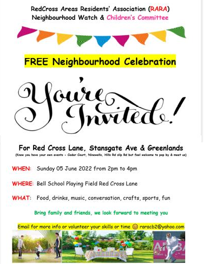 RedCross Areas Residents Association (RARA) & Red Cross Lane Area Neighbourhood Watch Scheme https://www.ourwatch.org.uk/scheme/52487/red-cross-lane-area